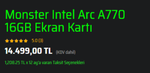 - Yeni Nesil Oyunları Deneyimlemek İsteyenler: En yeni oyunları en yüksek ayarlarda oynamak isteyenler için A770, kaçırılmaması gereken bir fırsat.