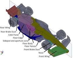 - Aerodinamik Yapı: Formula 1 araçlarının en dikkat çekici özelliği, aerodinamik yapısıdır. Ön ve arka kanatlar, difüzör, bargeboardlar ve taban gibi aerodinamik parçalar, aracın yere basma kuvvetini (downforce) artırarak virajlarda daha hızlı ve stabil olmasını sağlar. Aerodinamik verimlilik, hem yüksek hızlarda düzlük performansını hem de virajlardaki yol tutuşunu optimize etmek için kritik öneme sahiptir.